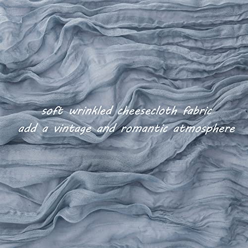 - Package Include: you will get 12 pieces 10ft length dusty blue cheesecloth table runner, enough quantity is suitable for wedding banquets and various parties, the size of each table runner is approximately 35 x 120 inches / 90 x 300 cm, which is large enough to cover rectangle and round tables, can also be spliced together for long tables. Even can be used for chair cover sashes or decorative napkins, backdrop draping or even gift wrapping.