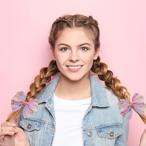 - Sports & Cute Bows for Girls : Bring out your little princess’s vibrant personality with these dazzling hair bows! Perfect for back-to-school, parties, or everyday cuteness, our 4-inch bows add a magical touch to any hairstyle—ponytails, braids, bangs, or half-up styles. Watch her confidence shine as she steps out in style!