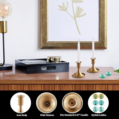 2PCS Candle Holder, OLULU Gold Taper Candle Holders Stand, Candlestick Holders for Table Centerpiece, Wedding, Party, Chri...