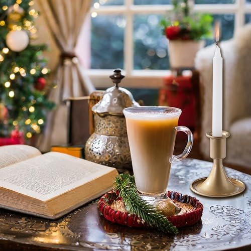 - 1. Elegant Vintage-Inspired Design: These candle holder boast a beautiful, vintage brass finish that brings a timeless elegance to any room. The short, skinny design makes the taper candle holders ideal for creating a sophisticated ambiance without overwhelming your space. Their low profile ensures the gold candle holders complement various decor styles, making the candle holders perfect for formal events, intimate dinners, and modern homes alike.