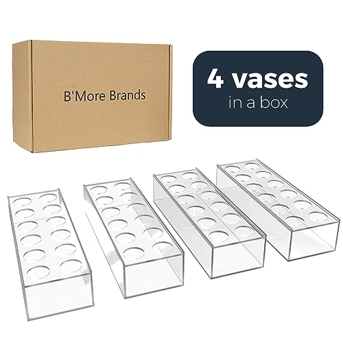 - 4 Pack 12x4x2.6" Versatile Floral Display: Showcase your blooms with elegance using our clear acrylic flower vase. Perfect for long-stemmed arrangements or floral votives, this vase is a versatile addition to your décor.