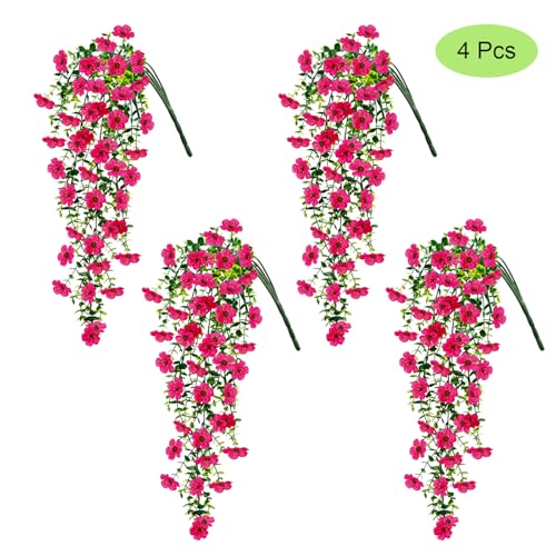 4 Pcs Fake Outdoor Artificial Flowers For Outdoors Uv Resistant, Plastic Flowers For Outdoors, Fake Hanging Plants Faux Fl...