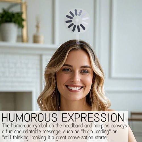 - Humorous Expression: The humorous symbol on the headband and hairpins conveys a fun and relatable message, such as "brain loading" or "still thinking," making it a great conversation starter.