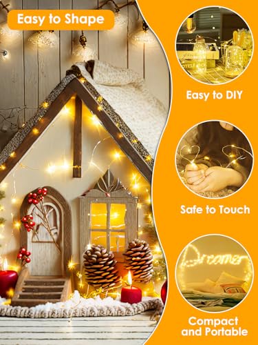 - Flexiable and Cuttable Fairy Lights: Made of durable and bendable copper wire, the fairy lights are easy to shape, you can decorate to anywhere, such as furniture, plants, ceilings, windows, mantelpiece, curtains, ect. Adding a sense of atmosphere to your home. These Christmas twinkle lights are also cuttable, allowing them to be trimmed to the desired length without compromising their function.