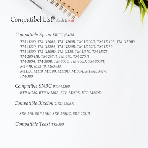 - Work for Epson ERC-30, ERC-34, ERC-38, M188B, TM-U220, TM-U220B; SNBC BTP-M300; Bixolon GRC-220BR, SRP-275, SRP-275III; Toast TKP300. More models please refer to the picture.