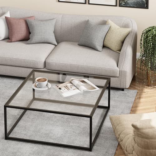 - [Easy Assembly] - Only need 5 minutes, you will get a simple and exquisite square glass coffee table. Our center table combines the clear glass, the minimalist design also adds unique aesthetic to your room.