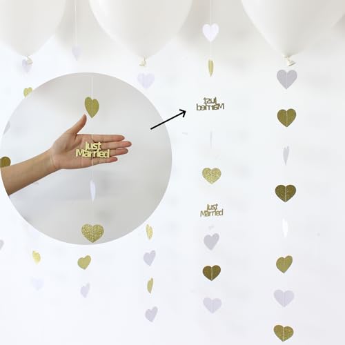 Blopee Gold Just Married Wedding Party Decorations Gold/White Heart Just Married Garland and Balloons for Wedding Bridal S...