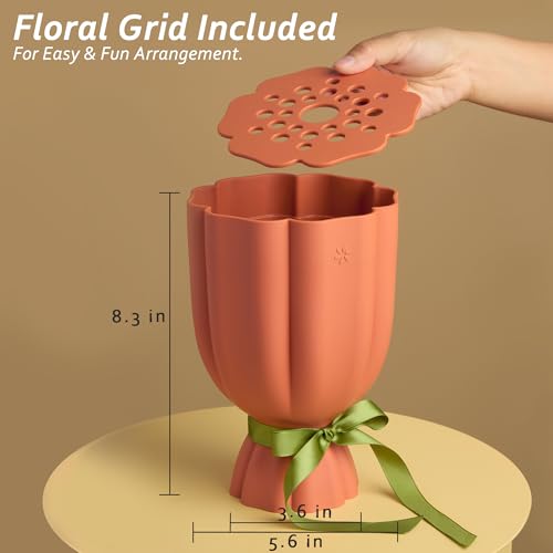 Bouquet Vase for Lego & Crafted Flowers - Flower Arrangement Vase with Floral Grid & Ribbons, Impact Resistant, BPA-Free A...