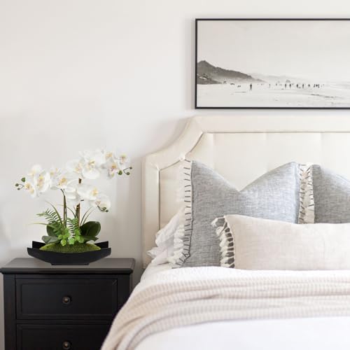 Briful Orchid Artificial Flowers 15in White Fake Orchid Silk Flowers with Black Pot Faux Phalaenopsis Arrangement for Home...