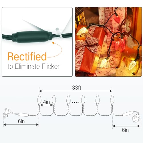 - Flicker-free Christmas Lights Decoration: Built-in rectifier to eliminate flicker, these cool white Christmas lights are more stable and disperse light on equally faceted strawberry surfaces, making the lights bright and vivid, easy to create a romantic festival atmosphere, enjoy the pleasure of a festive holiday with your family.