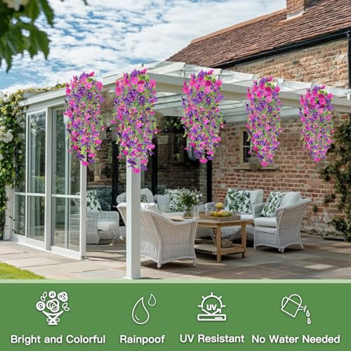 - ✅ 【No Fading & UV Resistant】The looking real fake Morning Glory hanging plants are made of high quality silk, which are designed to withstand outdoor elements, and UV and all the weather resistant, so they won't fade or deteriorate in the sunshine.This Fall Spring Summer Outside Decoration are Maintenance-free, durable, recyclable and reusable.