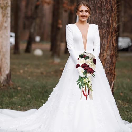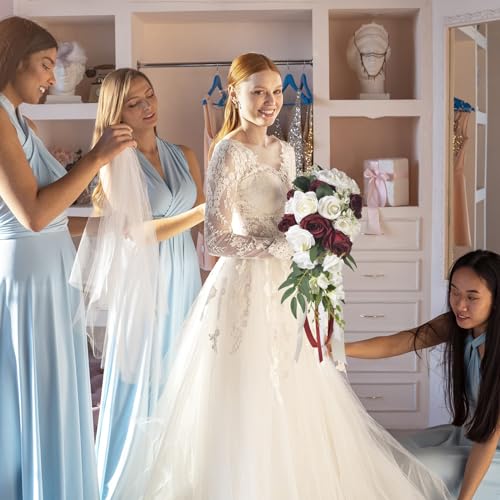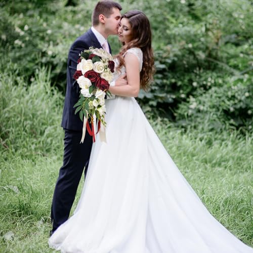 - Burgundy White Wedding Bouquets : Our exquisite cascading bride's bouquets are meticulously crafted by seasoned florists who pour their dedication into every petal. Each wedding bouquet is a work of art, carefully designed to infuse layers of romance into your special day.