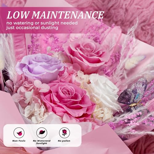 - Unique Gifts for Women: Our preserved flowers bouquet is the perfect unique gift for any special woman in your life, ideal for Valentine's Day, Mother's Day, anniversaries, birthdays, Christmas, New Year's, and more. It's a timeless gift that will be treasured for years to come.