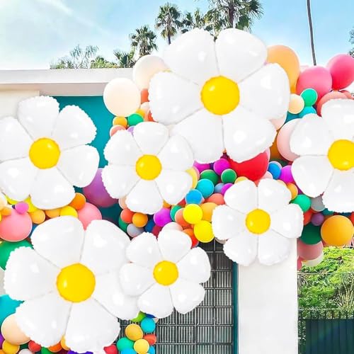 - Daisy Balloons: You will receive a 14pcs daisy balloon set, including 2pcs 43" large 4pcs 28" medium and 8pcs 15.8" small size daisy balloons small size daisy flower balloons; the different sizes of daisy balloons are ideal for filling in your balloon garland and creating a stunning arch effect, which will undoubtedly be the focus of any party or decoration.