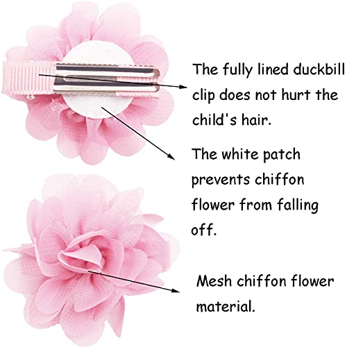 DeD 40PCS 2" Chiffon Flower Hair Bows Clips Flower Tiny Hair Clips Fine Hair for Girls Infants Toddlers Set of 20 Pairs