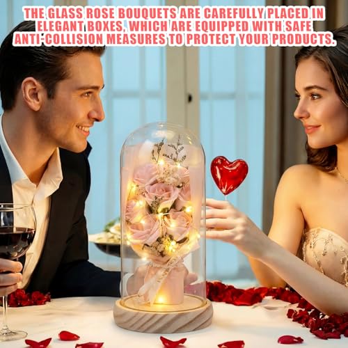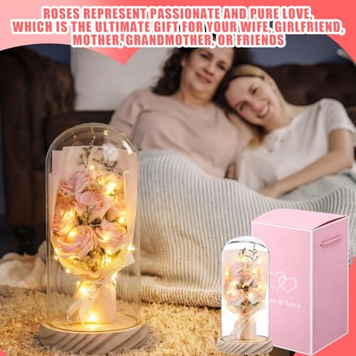 - Preserved Flower Gift: you will receive One glass cover and string of lights bouquet, the bouquet has seven pink roses, the size of the bouquet is just right, which symbolizes the eternity of love and beauty, it can kept for a long time; Just like your love, it is a gift that never withers or loses its vibrant colors