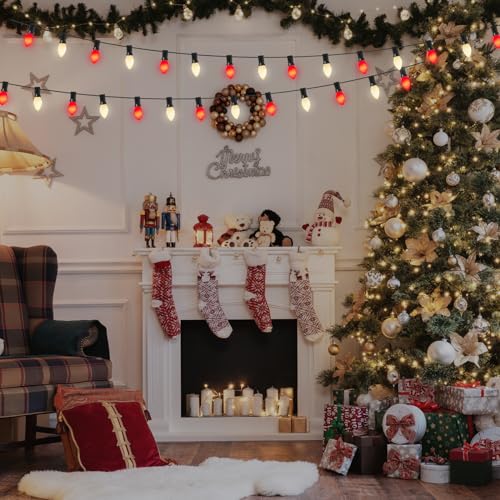 - Quick & easy install: Set up your C7 colorful chritsmas outdoor string lights in minutes. Red and white Christmas tree lights string bulbs socket has a clip on side, can be easily hang it in patio, christmas tree, roofline, porch, create an elegant bright holiday atmosphere