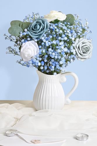 Elyum Babys Breath Artificial Flowers, 12 Pcs Long Stem Baby Breath Flowers Artificial Bulk, Real Touch Blue Fake Babys Br...