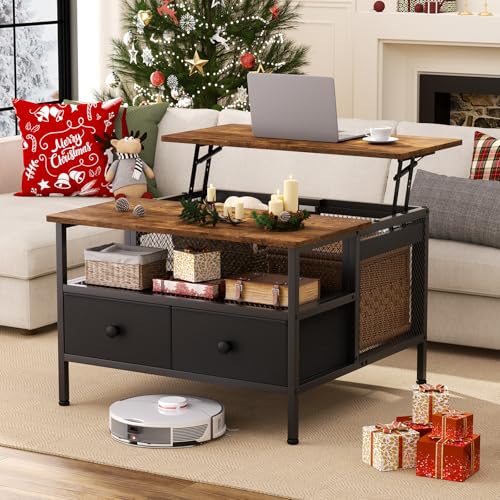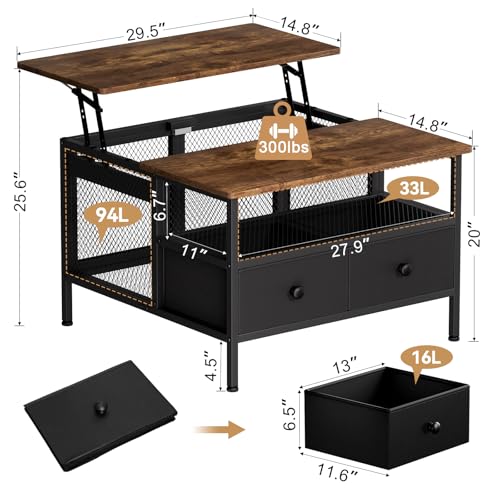 - Lifting Tabletop: Coffee table features a convenient lift-top design, heavy-duty metal lift mechanism ensures the wood tabletop raised or lowered gently and silently, allowing easy adjustment, while its multifunctional use as a work desk, dinning surface. Rounded tabletop corners ensure safety