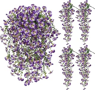 Famtores Purple Artificial Hanging Flowers for Outdoors, 4 PCS 29.5in UV Resistant Faux Outdoor Hanging Plants Pansy Flowe...
