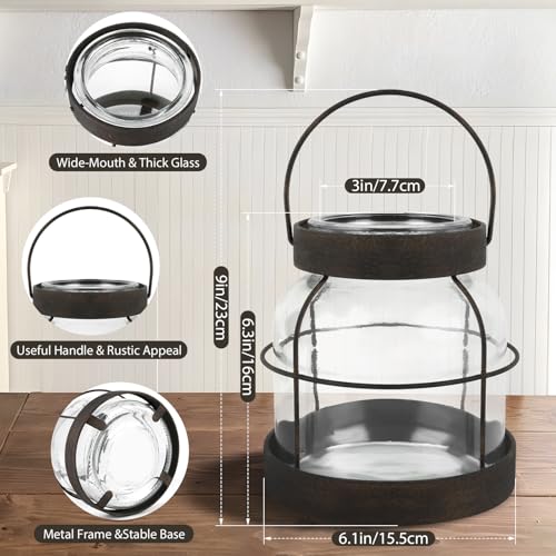 Farmhouse Glass Vase, Vintage Vase for Flowers with Distressed Metal Frame and Handle for Rustic Dining Tables Entryways L...