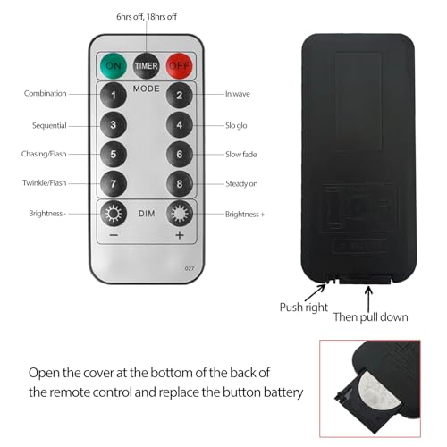 - 8 Lighting Modes: Press the black button on the battery box to select the mode you want: Combination, In wave, Sequential, Slo glo, Chasing/Flash, Slow fade, Twinkle/Flash, Steady on. Allow you to hang anywhere, no plug needed, energy-saving and low consumption.