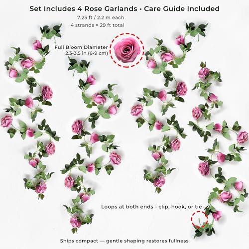 FiveSeasonStuff 29 Ft 4 Pack Rose Silk Flower Garland Artificial Flowers Decoration Hanging Floral Décor for Wedding Baby ...