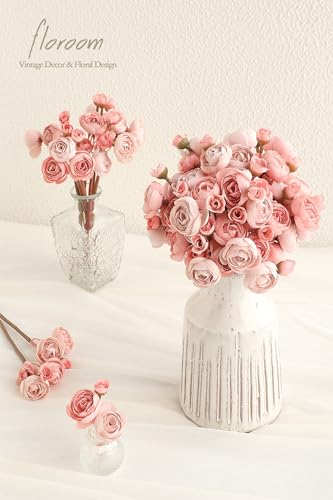 Floroom Ranunculus Artificial Flowers 18 Pcs Dusty Rose Faux Silk Mini Ranunculus Bulk Fake Wedding Filler Flowers for DIY...