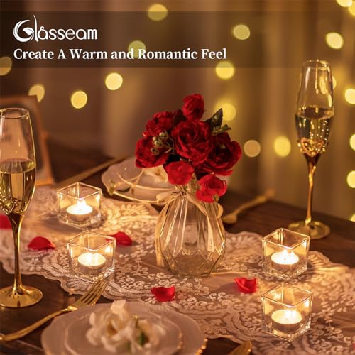 Glasseam Glass Votive Candle Holders: Set of 6 Clear Square Tealight Holder Small Tea Light Holders for Table Centerpiece ...