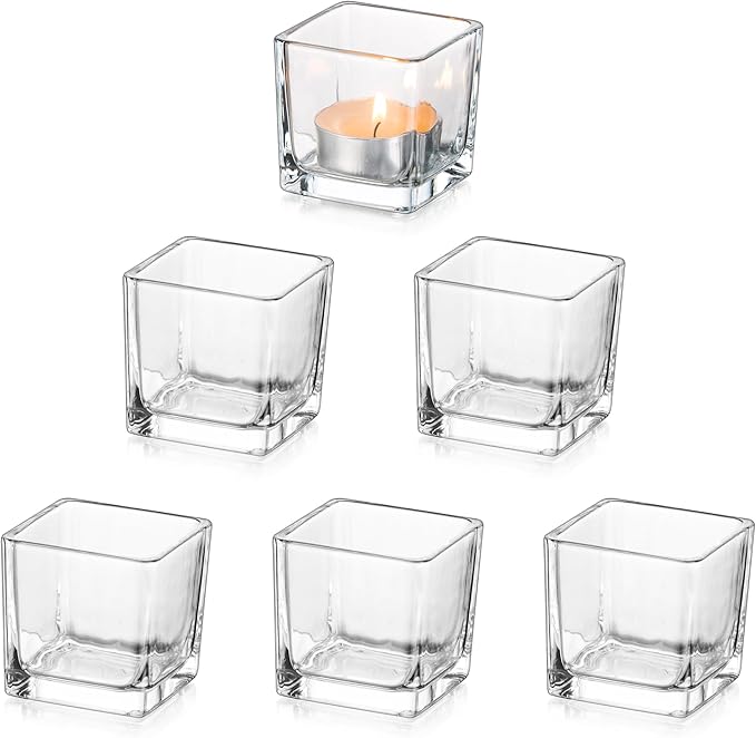 - Cute Cube Tea Light Candle Holder: 1.97'' x 1.97'' Length*Height | Set of 6 square glass candle holder set | Work well with wax or flameless votive candles, tea lights, floating candles and small flowers. Affordable and adorable for all year round decorations.