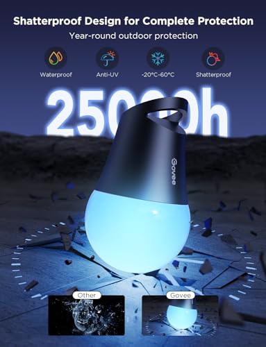 - Shatterproof Design for Full Protection: Govee outdoor lights are shatterproof, even when knocked over. These outdoor lights can be used for up to 25,000 hours and work in bad weather conditions from -20 °C to 60 °C.