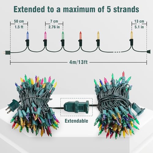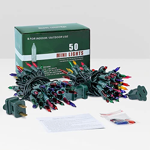 Hopolon Christmas Lights Multicolor,2PACK 13 Feet 50Count Incandescent Christmas Tree Lights with Green Wire,Connectable M...
