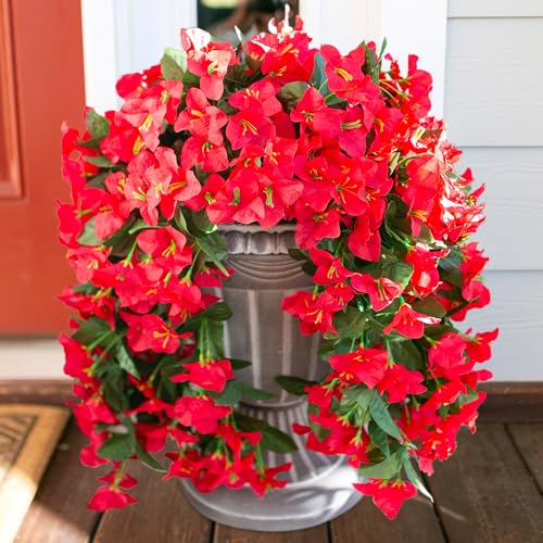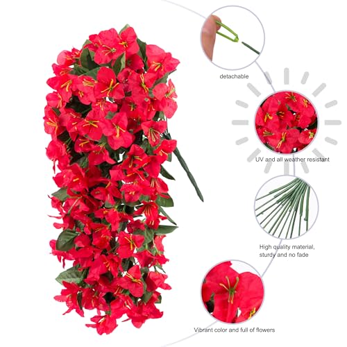 HyeFlora Bougainvillea Artificial Hanging Flowers Plants for Outdoors Decoration, 2pcs Red Fake Flowers Silk Bougainvillea...