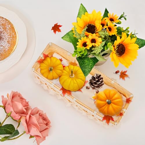 - VIBRANT GARDEN COLORS These artificial sunflower decor are designed with lifelike yellow sunflower blossoms, green foliages, and small white tender leaves, creating a full and elegant appearance. The handmade tray is complete with beautiful boho decoration on either side. It rustic farmhouse style that complements the potted flowers