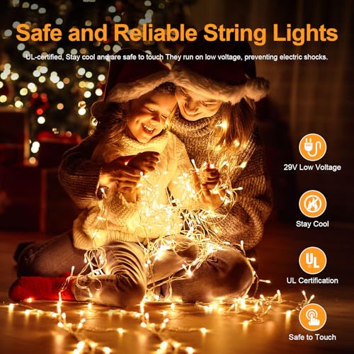 - 8 Lighting Options & Dimmable: Our led Christmas lights have 8 lighting modes, let you customize the ambiance—Steady On, Combination, In Waves, Slo-Glo, Chasing/Flash, Twinkle/Flash and so on. With 4 levels of brightness, you can adjust it as you need