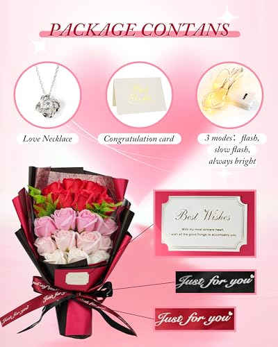 - 【Long-Lasting Beauty Handcrafted Floral with Love Necklace】:Roses artificial flowers crafted with high-quality soap flowers that emit natural fragrance, look realistic. No wilting, watering or pollen—stays vibrant for years. The eternal loop diamond necklace added a touch of glamor and elegance to the entire gift sets