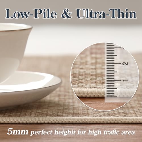 Lahome Farmhouse Geo Hallway Runner 2x6, Washable Beige Kitchen Runner Rug 6 ft Non-Skid Rug, Ultra-Thin Modern Runners fo...