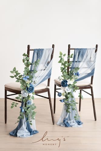 - WEDDING AISLE DECOR DETAILS: Set of 8 pre-made wedding aisle decoration flowers, 16 pcs runner drapes with ribbon, which helps to create your romantic spring/dusty blue and navy/summer wedding. Aisle suitable for four rows of guest seating. If there are more queues, it is recommended to purchase multiple copies.