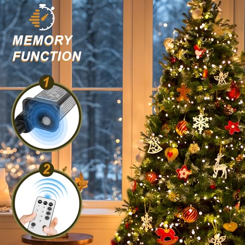 - 🎄 【Onvenient Memory and Timing Functions】 🌟Compared to other light strings, our Christmas tree lights are designed with a memory function that allows you to keep your last settings. You don't need to reset it. The intelligent timing function makes operation easier. Turn on the timer, the Christmas lights will light up for 6 hours. After 18 hours, the light will light up again. Saving energy and offering hassle-free operation day after day.