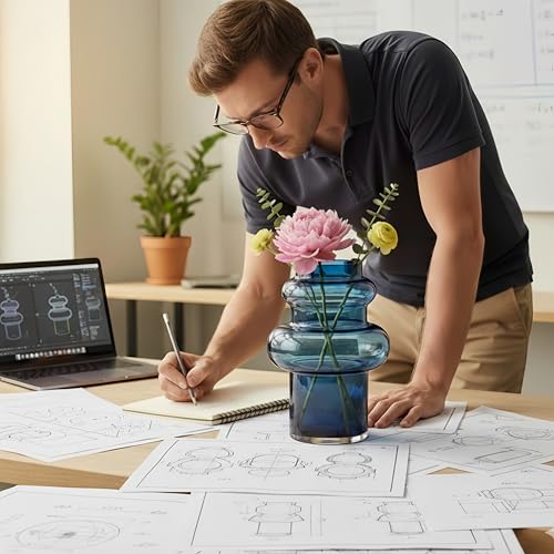 - 🌷[Product List] Simple straight transparent blue bubble cylindrical vase size: 6 inches in diameter * 9.8 inches in height, the glass will never fade, because of the light source, there may be a slight color difference between the actual object and the picture, the actual object will be transparent blue, please understand, do not include flowers