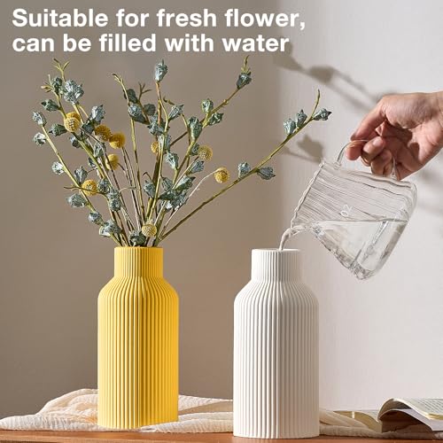 - 【MINIMALISM STYLE FLOWER VASES】Designed with ridged texture, this ceramic vases looks just modern & elegant. Whether your style is boho, modern farmhouse, rustic, or cottagecore, this vase will keep your home looking up to date year after year.