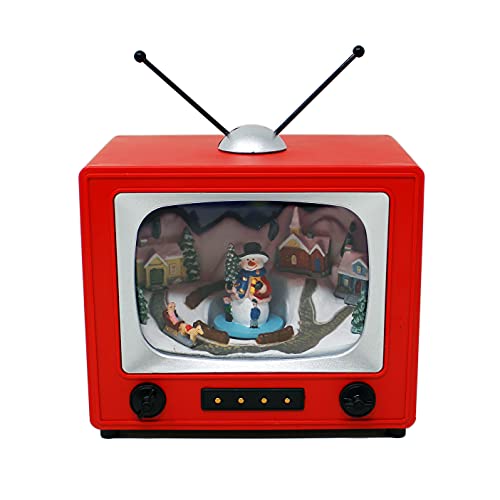 - RETRO HOLIDAY CENTERPIECE: Bring nostalgic joy to your décor with the Moments in Time 6” Red Retro TV Christmas Scene, featuring a vintage television design with an animated snowman and snowy village inside.