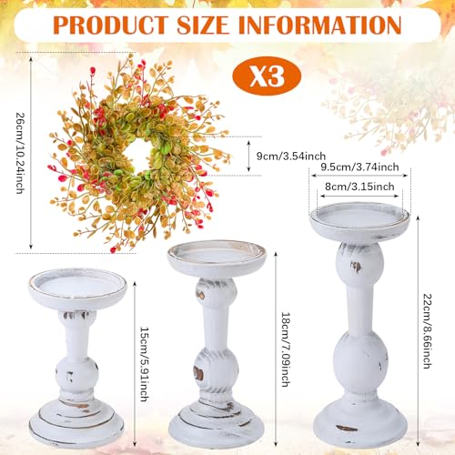 - Versatile Design: this fall farmhouse candle wreath ring includes candle holders in heights of approximately 6, 7, and 8.66 inches (15, 18, and 22 cm), and can accommodate pillar candles up to 3 inches in diameter; Paired with a colorful fall wreath, it's easy to add a touch of fall to your dining table or mantel