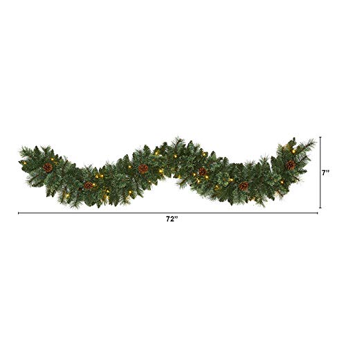 Nearly Natural 6ft White Mountain Pine Artificial Garland with 35 Warm White LED Lights and Pinecones, Includes Battery Box