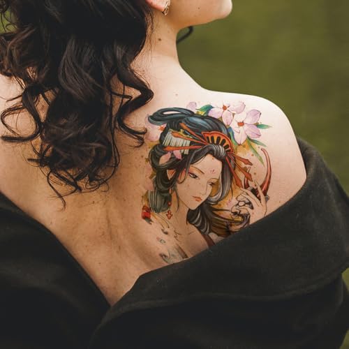 Oottati 6 Sheets Arm Waterproof Temporary Tattoo Stickers, Colorful Japanese Ancient Beauty Lady Women Hairpin Geisha Praj...
