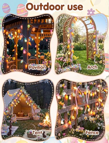 - 🐇🥕🥚PERFECT GIFT & SPRING DECOR: These unique Easter string lights make a thoughtful and creative gift for kids, friends, and family. They are an ideal decor solution for creating a sweet atmosphere for Easter egg hunts, birthday parties, baby showers, and spring gatherings. The soft, inviting light instantly transforms dorms, living rooms, and porches into a festive, joy-filled haven suitable for any indoor fairy lights application.