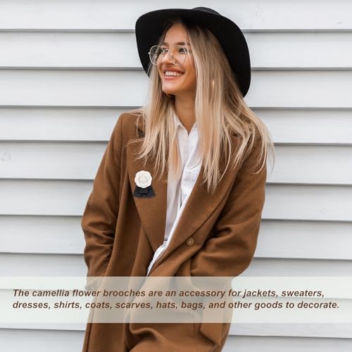 PATIKIL Flower Hair Clips, 2 Pack Camellia Hairpin Floral Brooches Pin Handmade Leather Flower Brooch for Lady Bridal Wome...