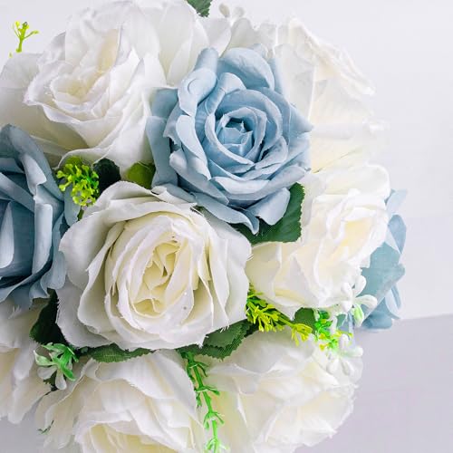- 【Elegant Design for Wedding Decorations】This handcrafted bridal bouquet features a stunning arrangement of white and blue roses, delicate lavender sprigs, romantic gypsophila, and soft rose leaves. Bride bouquet accentuated with elegant ribbons, paearls, and shimmering diamonds, wedding bouquet for bride exudes a timeless and romantic charm, featuring vibrant yet natural colors that enhance any wedding theme