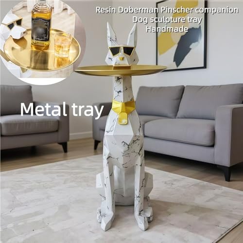 Resin Dog Statue with Tray, Standing Animal Sculpture End Table, Modern Accent Table/Coffee Tables for Living Room Bedroo...