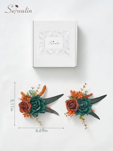 Serwalin 2 Pcs Boutonniere, 6-7 Inch Teal Orange Corsage for Wedding, Boutonniere for Men Groom and Best Man Prom Ceremony...